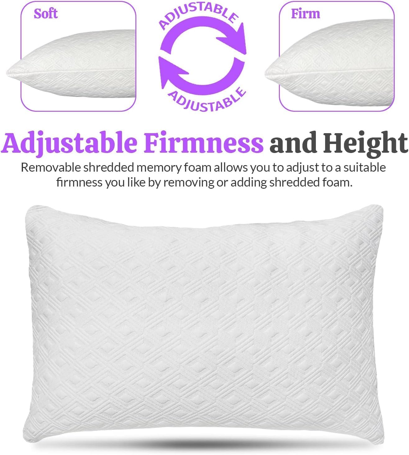 HIGH QUALITY FABRIC AND FILLING: Our pillow covers provide extreme breathability and softness. It's filled with high quality shredded memory foam as you can see on product pictures. It’s soft, conforms to your head, and rebounds quickly to retain its shape. EXCELLENT SUPPORT FOR ALL TYPES OF SLEEPING POSTURE: Our shredded memory foam pillow provides good support for your neck, shoulder, and upper back muscles throughout the night. They are supportive enough for sleepers of all styles (back, stomach and side sleepers), weights, and body types. PILLOW CASE WITH ZIPPER: Our pillow cases with zipper opening on the inner liner allow you to adjust to a suitable height and volume by removing or adding the shredded memory foam. Also with this zippered design case you can remove the pillow case to clean and wash. OEKO-TEX CERTIFIED: Oeko-Tex textiles and fabrics are certified free of harmful chemicals and are safe for human use. Oeko-Tex is a worldwide consistent, independent testing and certification system for raw, semi-finished, and finished textile products at all processing levels, as well as accessory materials used. It provides confidence in textiles. DEDICATED CUSTOMER SERVICE: We are so confident in the quality of our product. If you are not satisfied with them, let us know with one simple email and you will receive 100% refund or a replacement without any question.