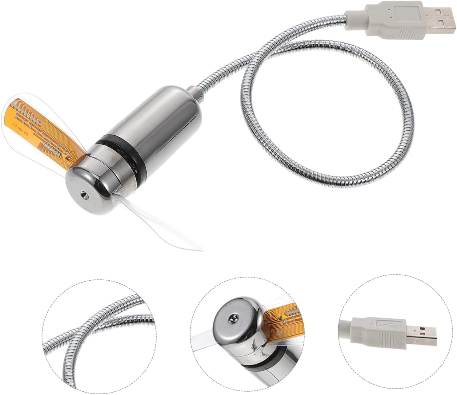 Package List 3 x USB Clock Fan Characteristics -Material: PVC, aluminum LED fans -Size: 41.00X9.50X2.40cm/16.11X3.73X0.94 in small fan. -Color: Silver USB clock fan - Made of premium PVC and aluminum material, for use, not easy to change color, crack or break USB electric fan. - It is compact in size and light in weight, convenient to carry it to any place you want fan mini. - This mini USB LED fan with temperature and clock is a perfect accessory for computer USB mini fan. - It is simple in design and in use, give you a pleasant using experience travel fan. - An amazing present choice for your girlfriends, female friends or family on Valentine's day, Christmas and other special days clock fan.Goods Descriptioncomputer cooling fan This mini USB fan can not only provide cooling air for you at hot days, but also is designed with LED light, clock and temperature display, which make it a versatile min fan for using , travel or office.clock fan and sturdy for use.small cooling fan Fine workmanship ensures practicality and durability