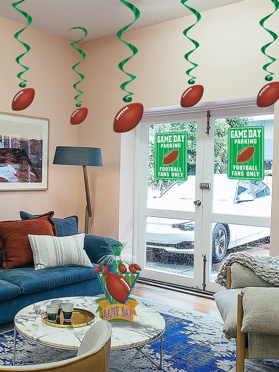 Beistle 55595 Includes 24 Football Cutouts. These football cutouts are brown with white laces and black detailing. The football measures 11 Inch tall by 18 Inch wide and is printed on board stock. These are great to hang on walls or in windows for football parties.