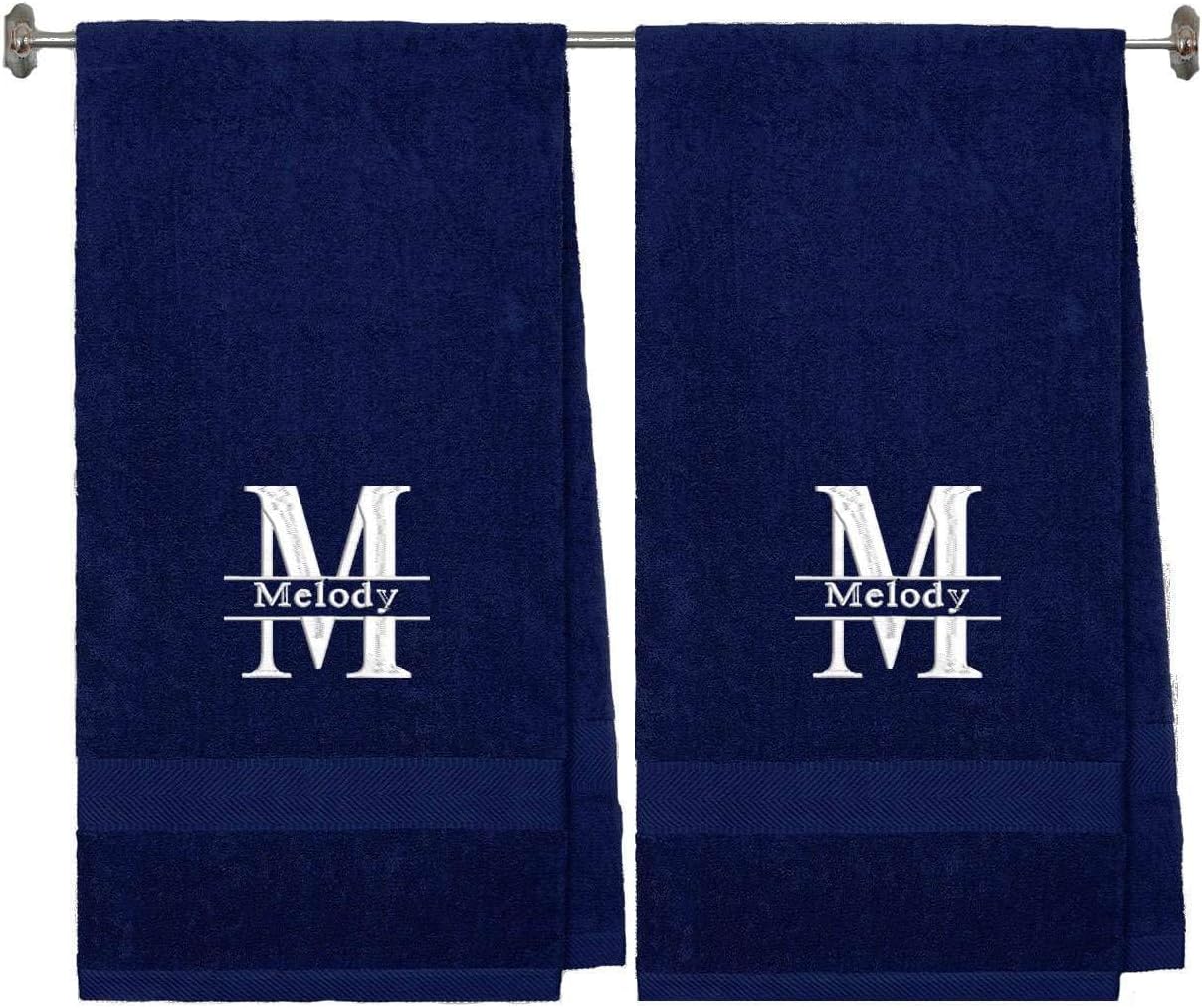 • Two pieces standard bath sheets 35 inches by 65 inches in size. Including embroidered custom split initial and name