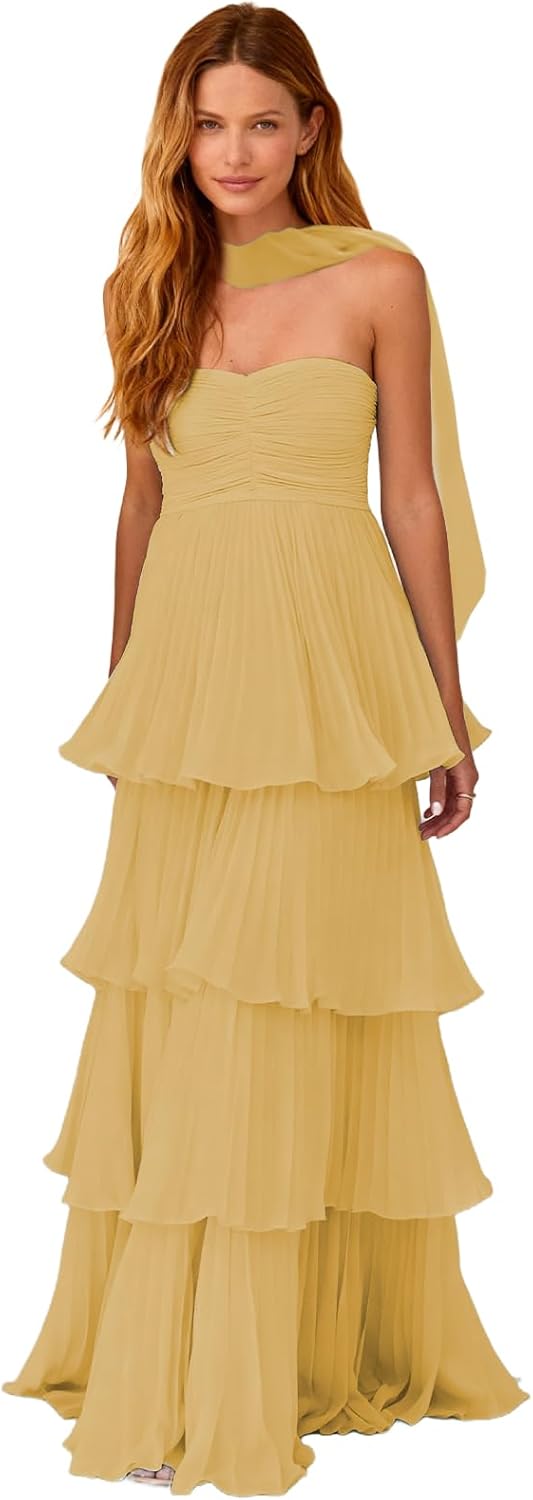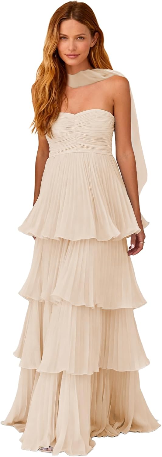 | Embellishment Feature | Strapless Chiffon Bridesmaid Dress for Wedding |