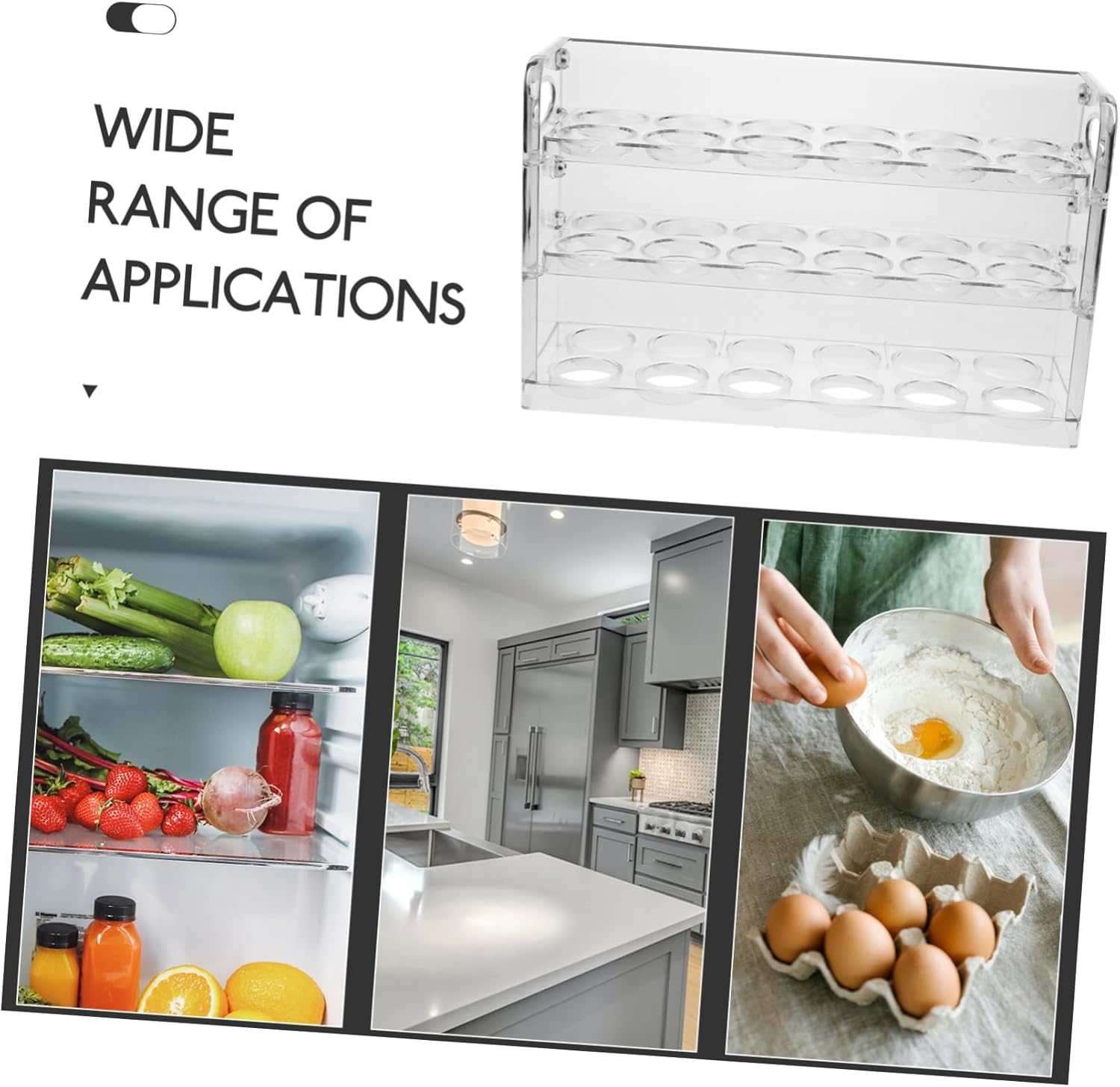 Package Include 1 x egg holder Features -Color:Transparent Fridge Egg Holder -Material:PET Egg Organizer For Refrigerator -Size:31.80X20.00X10.00cm/12.50X7.86X3.93in egg stands -Multi tier egg holder, can hold eggs safely and organized, make your kitchen cooking easier Egg Organizer. -Each egg has an independent egg groove to prevent the eggs from colliding and breaking. Deep grooves keep the eggs from egg storage racks. -Suitable for home, hotel, restaurant, snack bar, supermarket and other places Egg Storage Stand. -This egg storage tray will protects your eggs. Keep organized for your refrigerator Multi-Layers Eggs Holder. -Can be used as a practical housewarming present to your friends, they will be very happy transparent egg holders.Goods InformationEgg Organizer With reasonable design, it can avoid the egg's fragile accidentally.Fridge Egg Holder In a practical egg tray, eggs can be kept safe and fresh, and with size, suitable for refrigerators or other place.egg holder fridge Made of pet material, the egg container can store your eggs safely while keeping their freshness