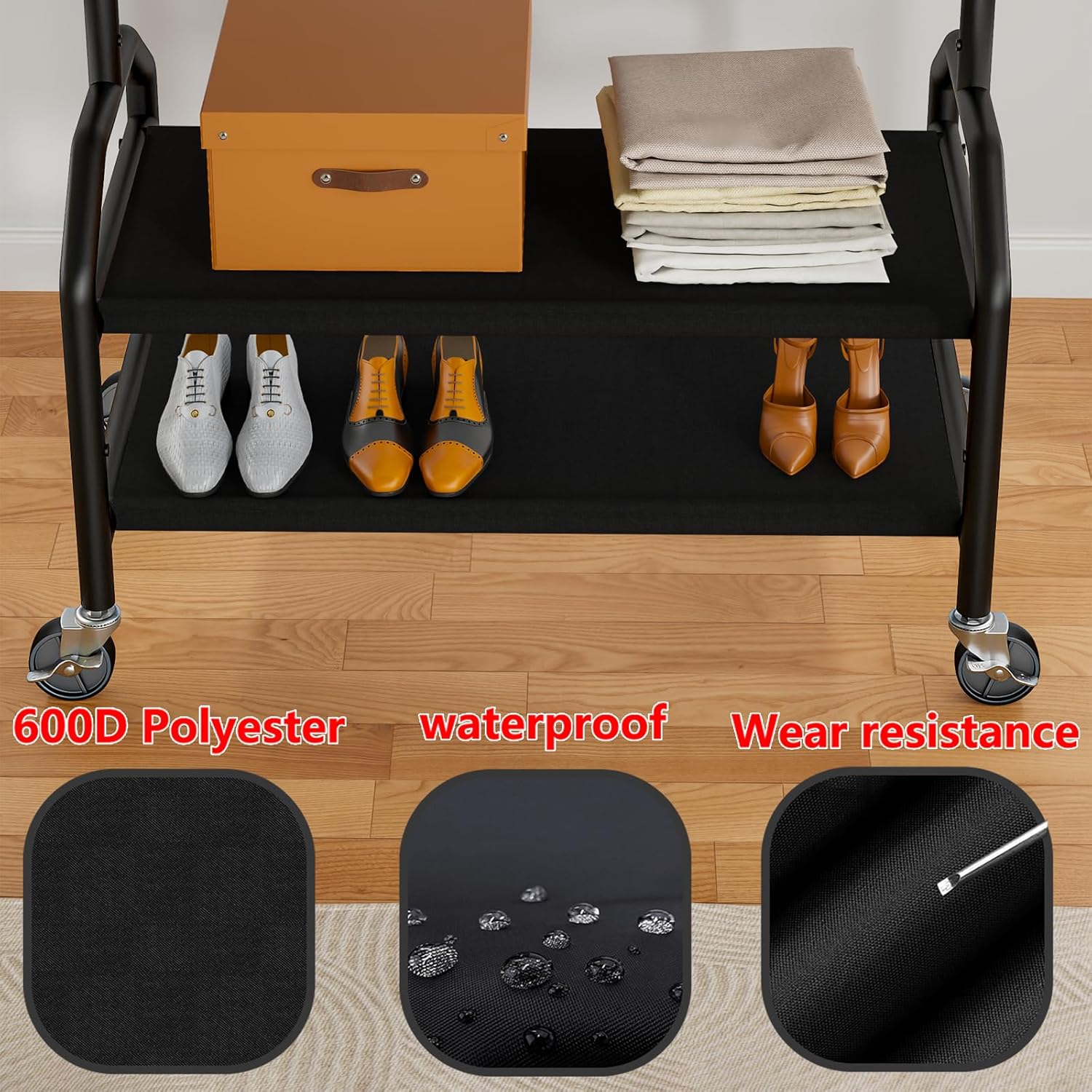 | Included Components | bottom shelf, clothes hanger, industrial wheels, widen base |