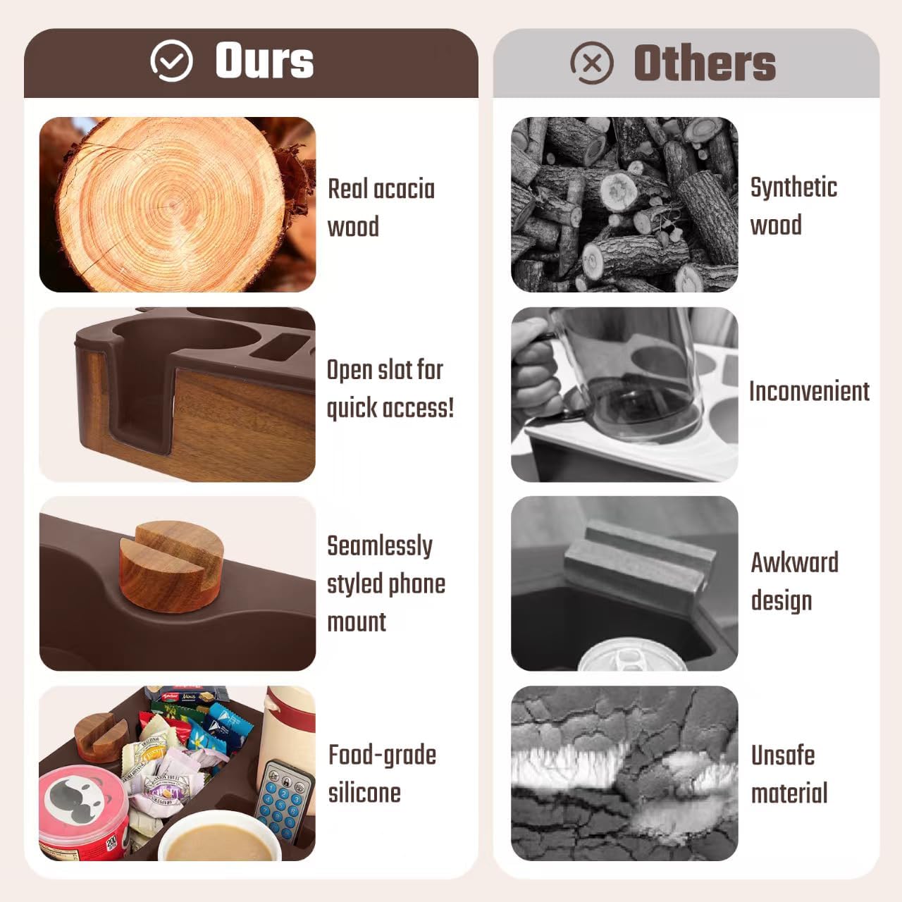 | Material | Acacia Wood, Silicone |