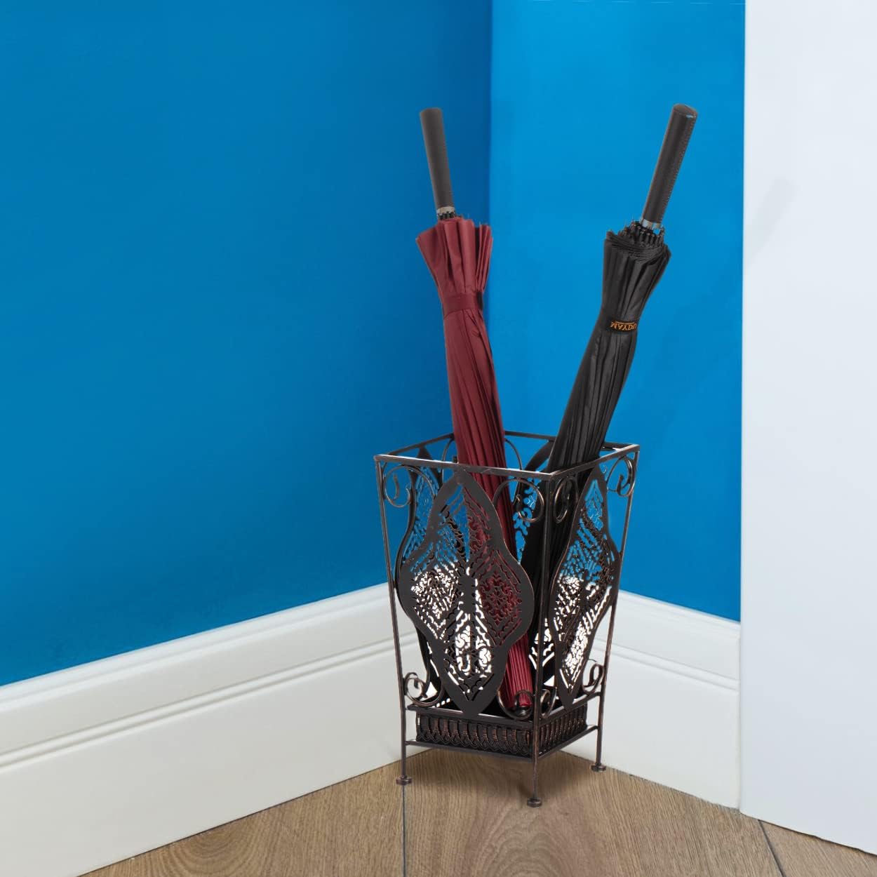 This eye-catching umbrella stand by Dualplex is truly unique in design and by the antique look, Its Constructed of powerful Metal and finished with its nice colors with an amazing style and charm! This decorative and functional umbrella stand has a removable drip tray for easy clean up and saves your floors from getting wet. It looks great in offices or home entryways. It's an accent piece that's sure to gain as much attention for its splendour as for its utility every home or office. Adds some elegance to your entry foyer and gives your umbrellas a stylish parking place offering both striking elegance and practicality. The Dualplex umbrella stands meets the high quality standards; it's an amazing gift for anyone, your friend, parent, or a co-worker.