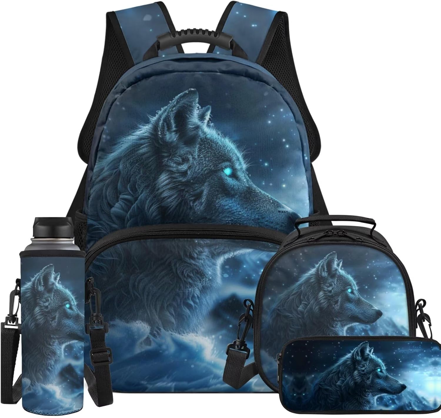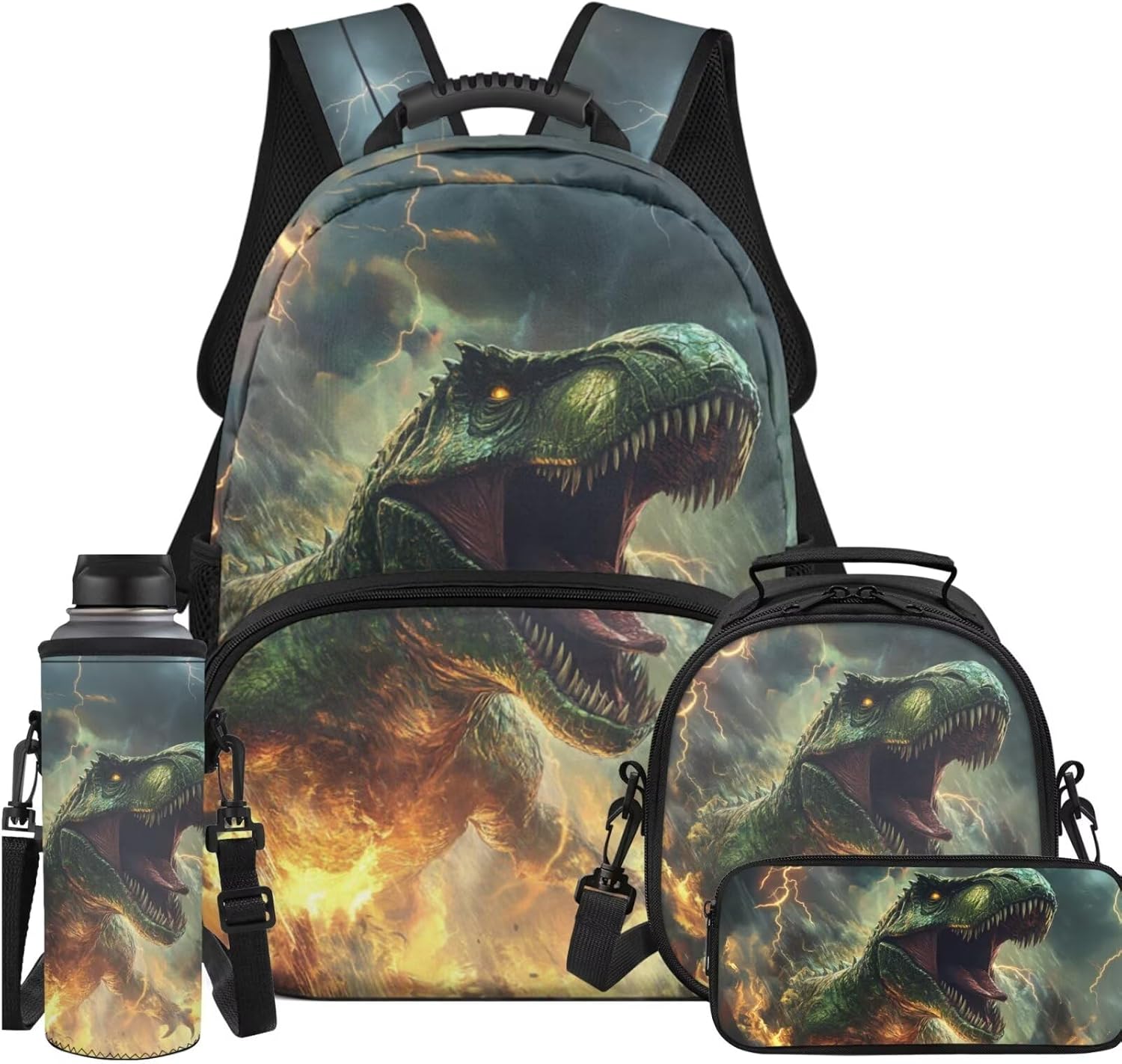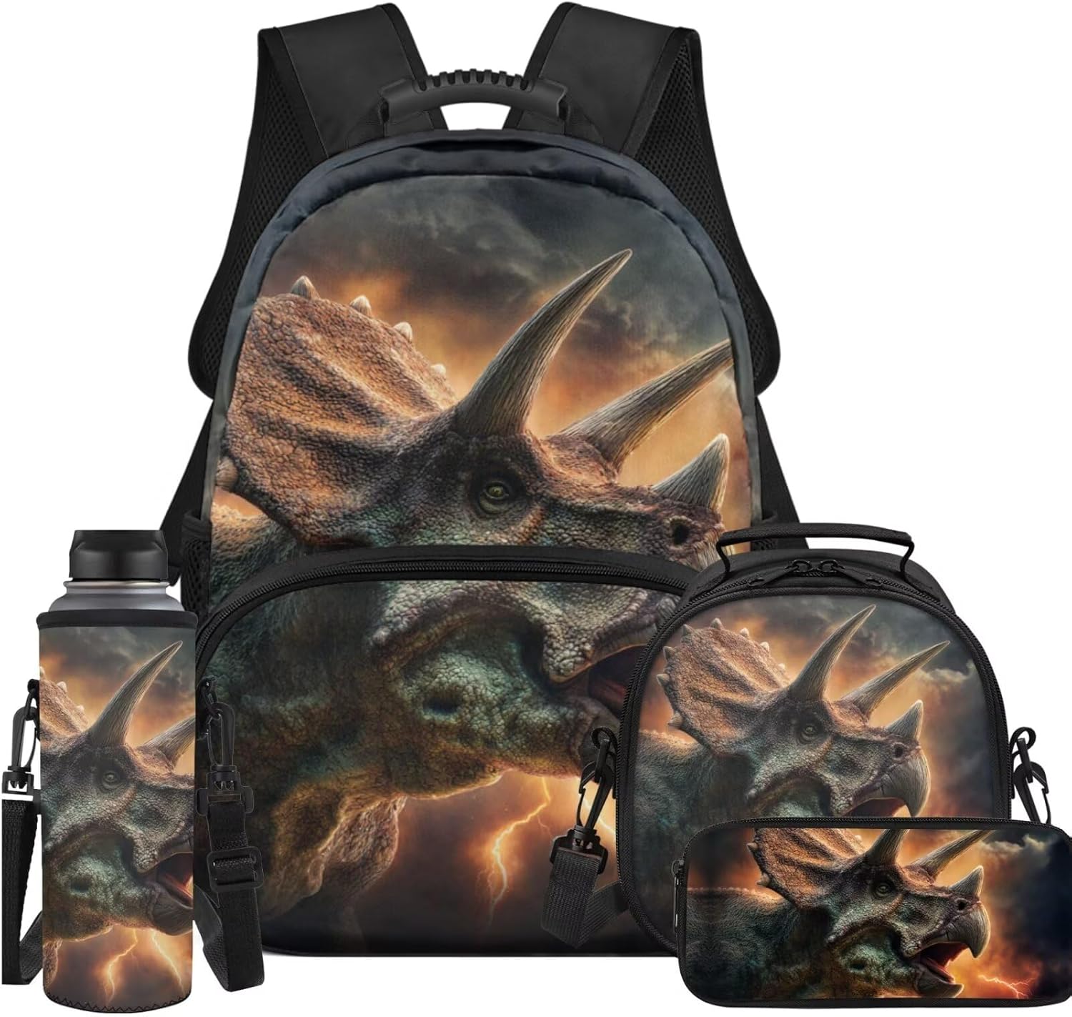 4 Piece backpack set for kids ,include kid's school bag + pencil bag + lunch bag + water bottle Cover.The School Bag is comfortable and soft, not easy to fade; smooth zipper strips do not snag,large space capacity, easy to organize and carry storage,suitable for preschool kindergarten Elementary students.The pencil case is comfortable and not easy to fade school supplies pencil Case. The lunch bag are both sophisticated and convenient, guarding your child's daily health. The water bottle sleeve cover convenient for children to carry around, protect the water cup, suitable for a variety of water cups. This backpack and lunch bag set for girls boys with pencil case and water bottle sleeve,can be a sweet gift for kids for back to school and Birthday, Start of School ,Anniversary ,Christmas ,Halloween Thanksgiving.