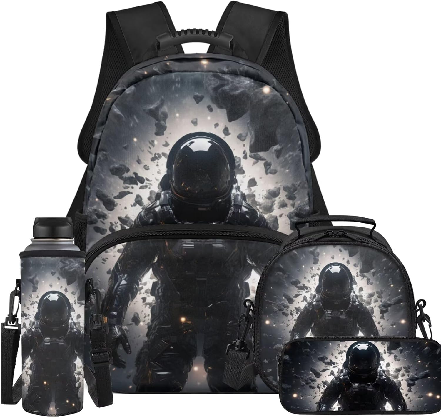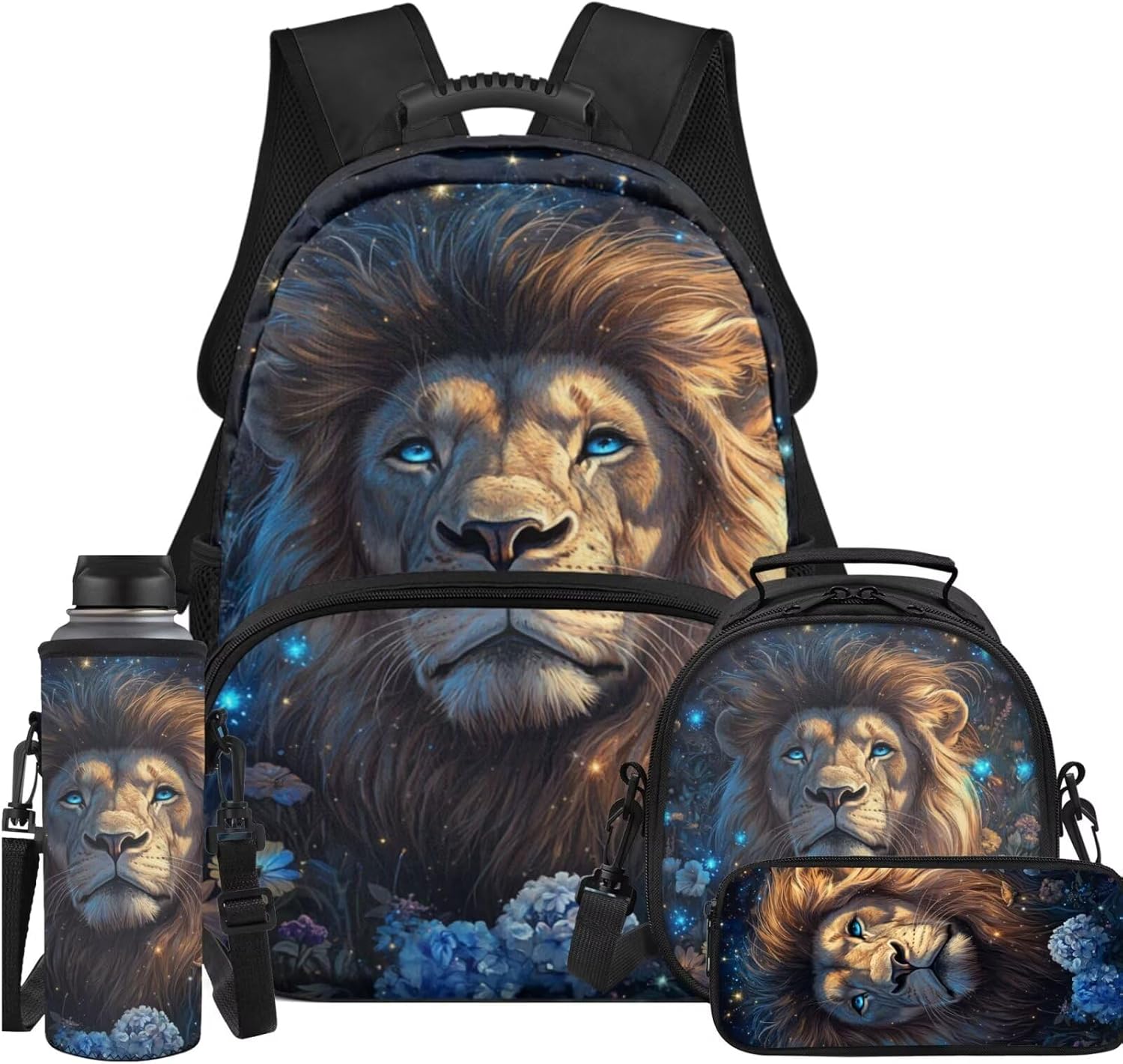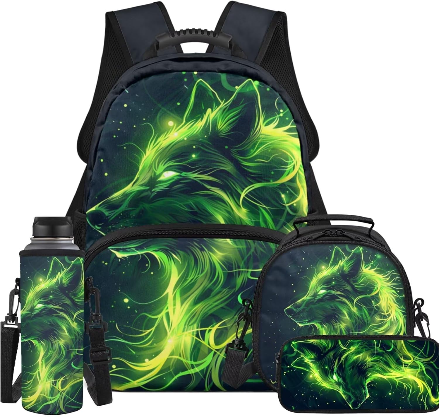 4 Piece backpack set for kids ,include kid's school bag + pencil bag + lunch bag + water bottle Cover.The School Bag is comfortable and soft, not easy to fade; smooth zipper strips do not snag,large space capacity, easy to organize and carry storage,suitable for preschool kindergarten Elementary students.The pencil case is comfortable and not easy to fade school supplies pencil Case. The lunch bag are both sophisticated and convenient, guarding your child's daily health. The water bottle sleeve cover convenient for children to carry around, protect the water cup, suitable for a variety of water cups. This backpack and lunch bag set for girls boys with pencil case and water bottle sleeve,can be a sweet gift for kids for back to school and Birthday, Start of School ,Anniversary ,Christmas ,Halloween Thanksgiving.