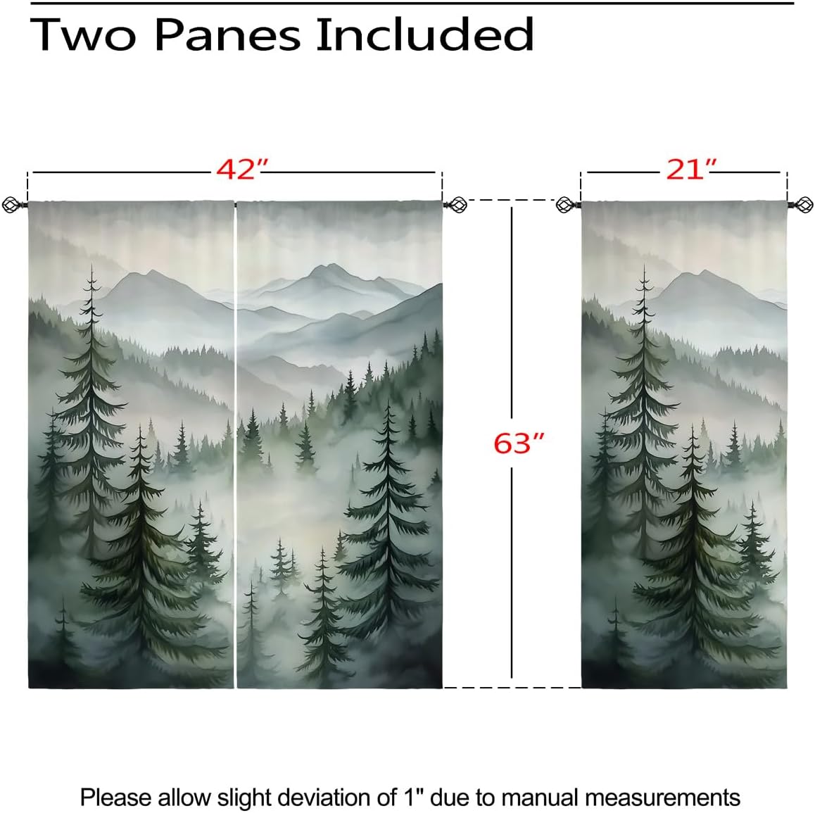 These print curtains are perfect for Living room, bedroom, kids room, kitchen, yard, patio, parlor, sliding door with Foggy Forest, Green Nature Rustic Sun Misty Woodland pattern.- Unique design:· Save energy costs by insulating against heat and cold.· Reduce noises from busy streets and high-traffic areas.· Protect furniture from sun damage and fading.· Provides complete privacy when needed· Perfect for any bedroom, office kids room and living room.- Package Included:· Blackout window curtains 2 Pcs set ( two panels).- Material:· Our Blackout Curtain Liners are crafted from a durable soft and thick triple weaved blackout fabric which can block out sunlight and UV rays. The darker color of the fabric, the more light it can block.- Easy Care Instructions:· Machine washable in cold water· Do not bleach.· tumble dry on low· low temperature ironing- Notes:· For your curtains to be more perfect, please choose a size 5-10 Inch larger than the actual window width.· here may be slight differences in colors on different displays. If you have any questions about the product, please feel free to contact us.