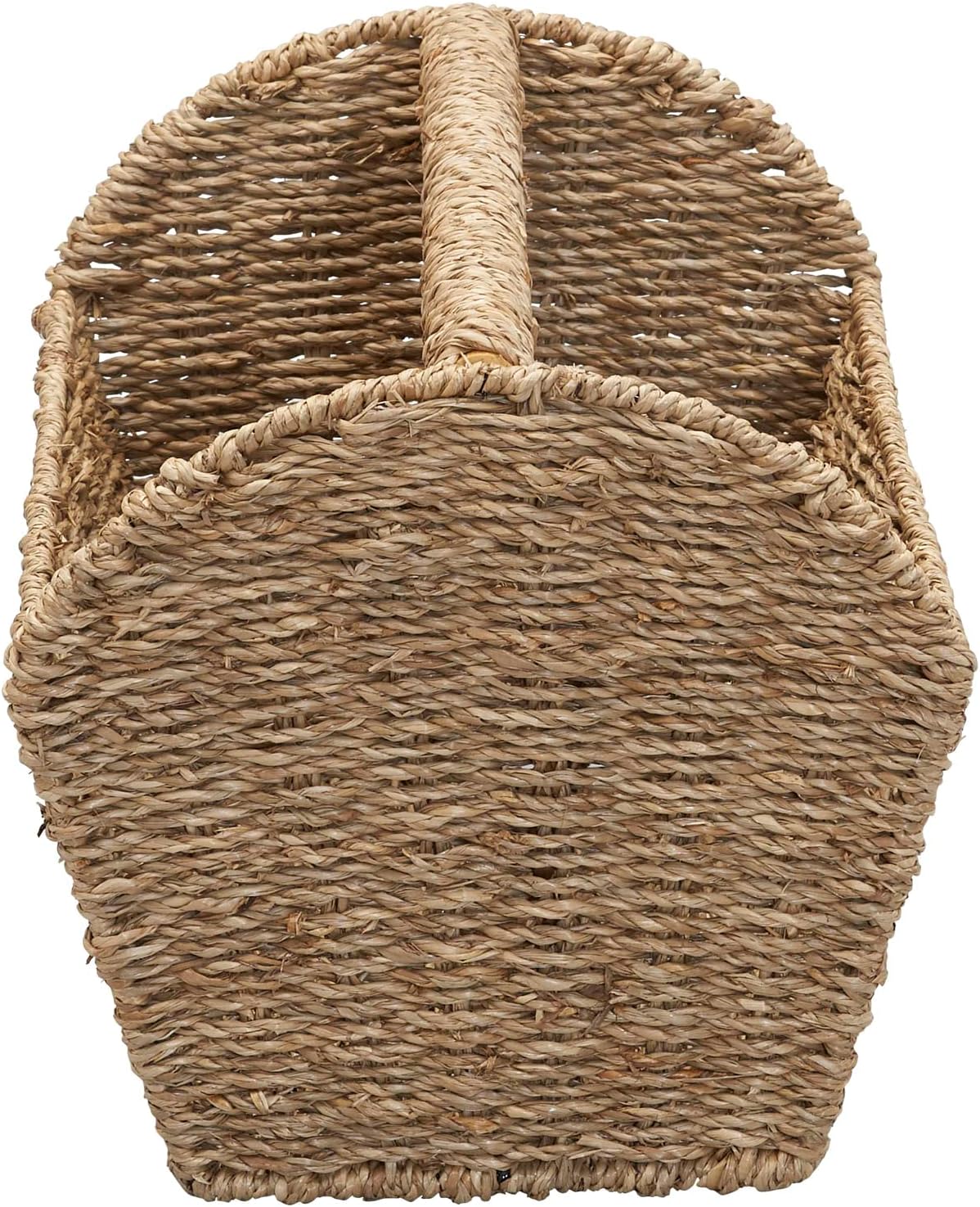 Household Essentials Wicker Magazine Basket, 2 Sectioned, Strong Water Hyacinth Weave, Durable Metal Frame, Comfortable Built-In Handle, Great for Storage, Decoration or Sorting, Natural