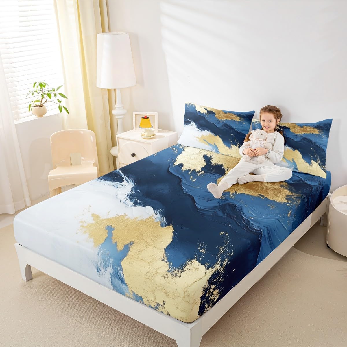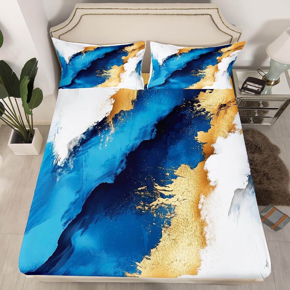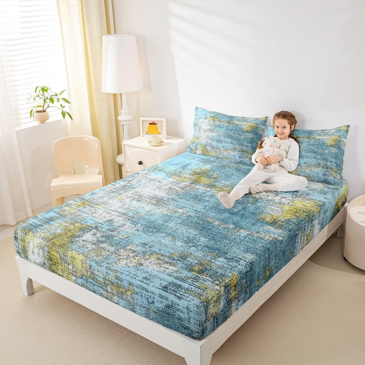 Our bedroom decor fitted sheet look with the vivid stylish and elegant print bedding set Specifications Twin size: 1 fitted sheet 39 Inch x 75 Inch x 16 inch and 1 pillowcase 20 Inch x 30 inch Full size:1 fitted sheet 54 Inch x 75 Inch x 16 inch and 2 pillowcases 20 Inch x 30 inch Queen size:1 fitted sheet 60 Inch x 80 inch x 16 inch and 2 pillowcases 20 Inch x 30 inch Flat sheet is not included; deep pocket fitted sheet with elastic all around Materials: microfiber fabric, soft and feel like cotton for a good night sleep Fashion forward inspired 3d print patterned technique, create a cool sleep environment for your kids, making your bedroom full of imagination Nice choice for birthday, boys and girls will be so happy with this Care instructions Dry clean preferred; machine washable, use cold water on gentle cycle, tumble dry low