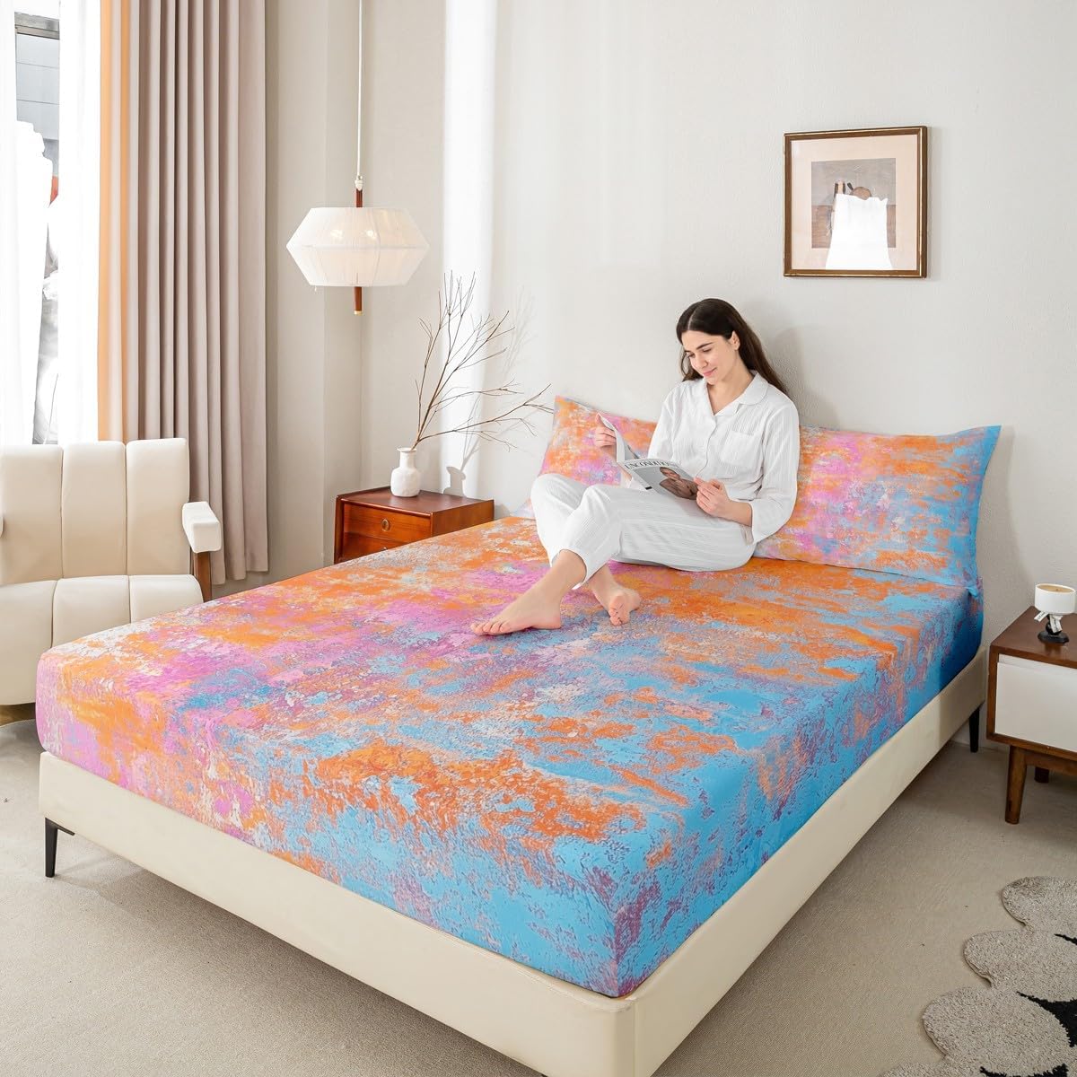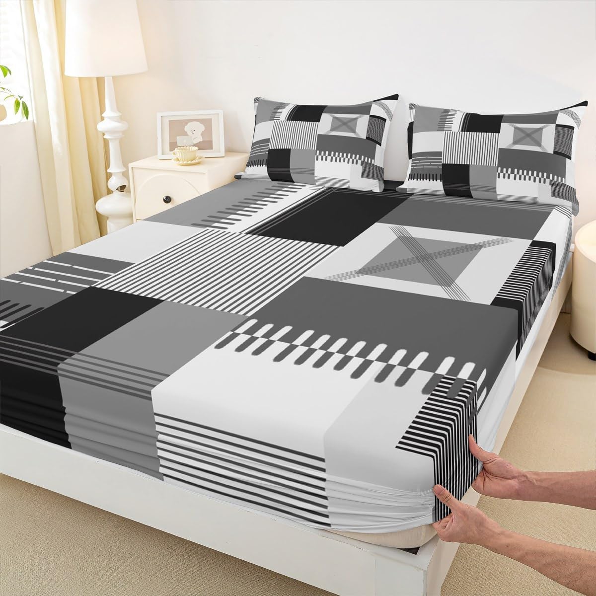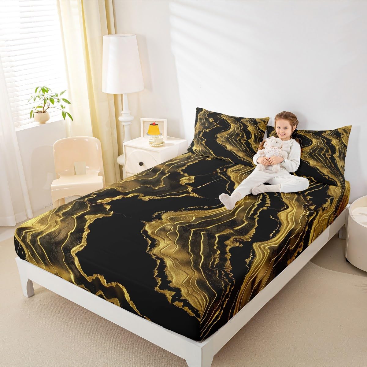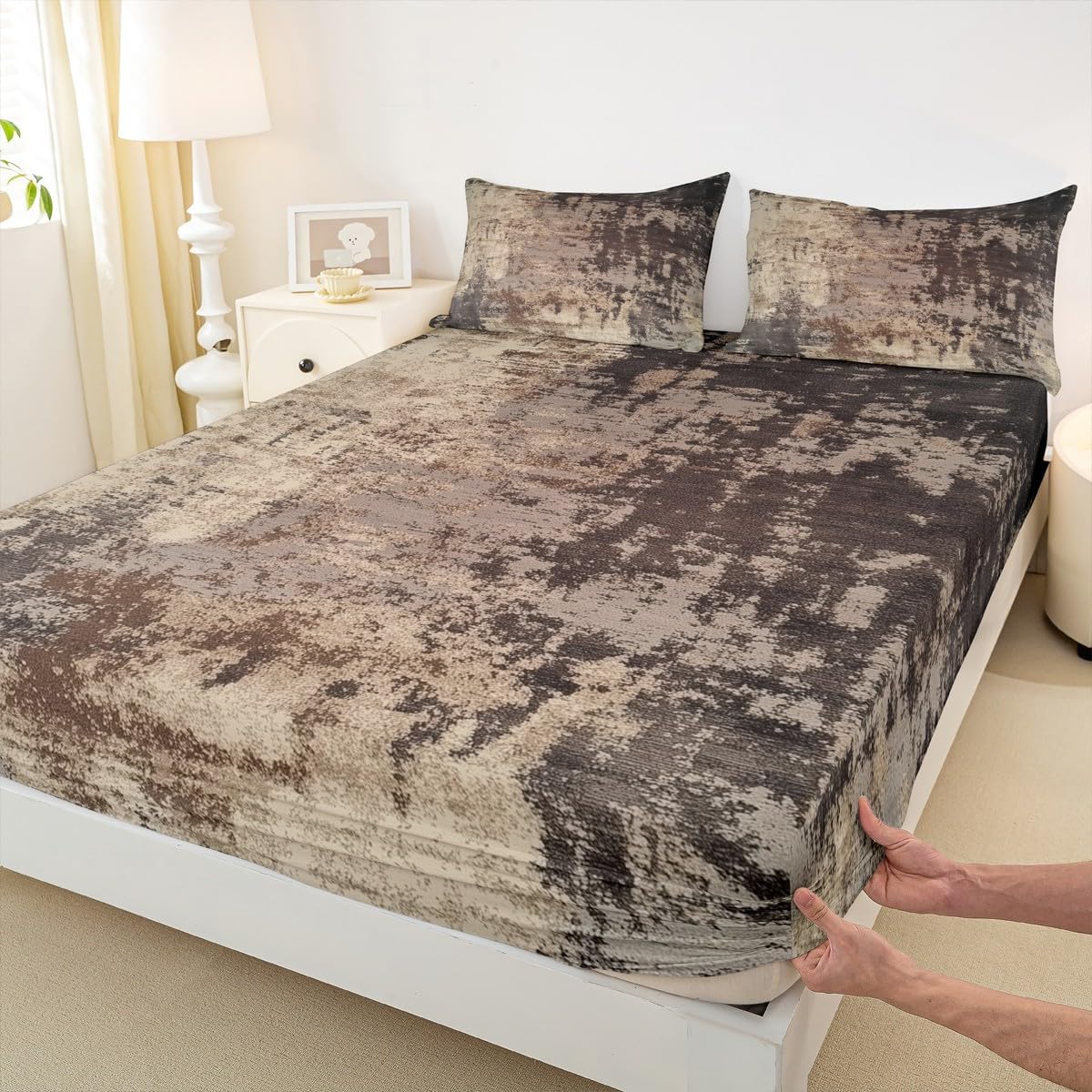 Our bedroom decor fitted sheet look with the vivid stylish and elegant print bedding set Specifications Twin size: 1 fitted sheet 39 Inch x 75 Inch x 16 inch and 1 pillowcase 20 Inch x 30 inch Full size:1 fitted sheet 54 Inch x 75 Inch x 16 inch and 2 pillowcases 20 Inch x 30 inch Queen size:1 fitted sheet 60 Inch x 80 inch x 16 inch and 2 pillowcases 20 Inch x 30 inch Flat sheet is not included; deep pocket fitted sheet with elastic all around Materials: microfiber fabric, soft and feel like cotton for a good night sleep Fashion forward inspired 3d print patterned technique, create a cool sleep environment for your kids, making your bedroom full of imagination Nice choice for birthday, boys and girls will be so happy with this Care instructions Dry clean preferred; machine washable, use cold water on gentle cycle, tumble dry low