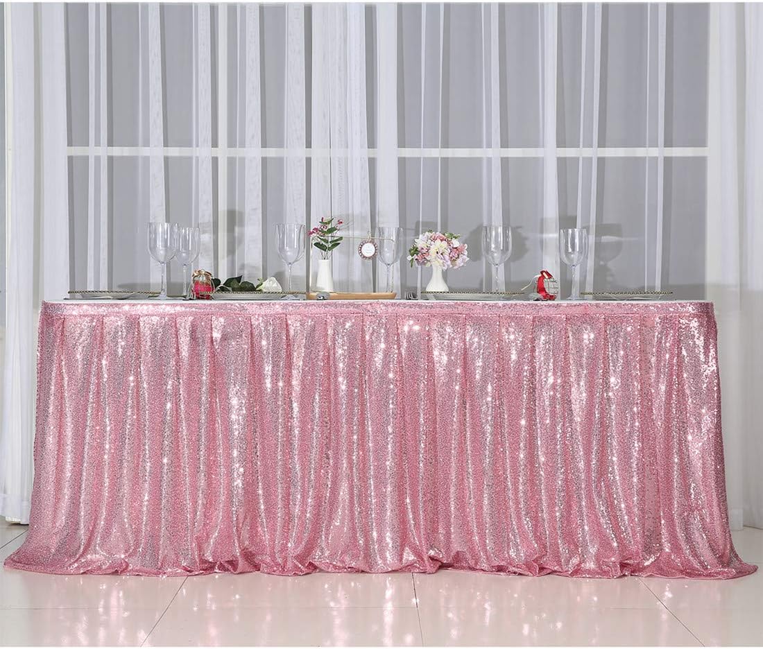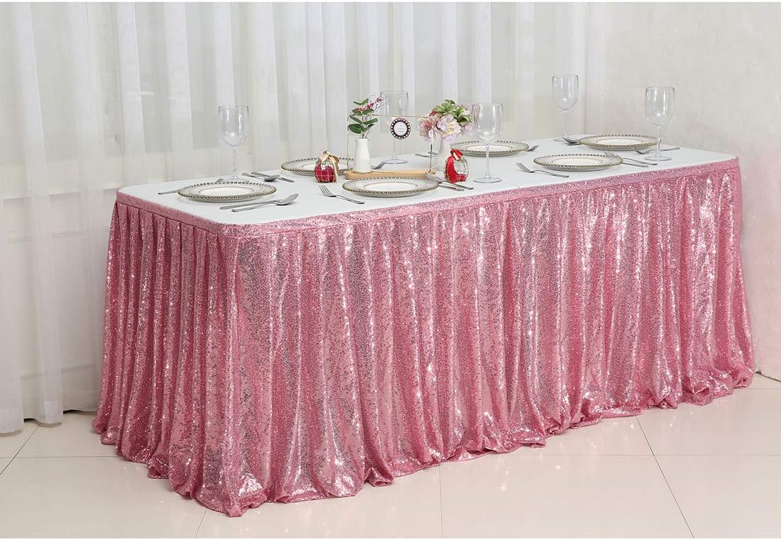 Juya Delight Sequin Table Skirt Rectangle Round Table Cover for Party Wedding Baby Shower Decoration(Rose Gold,L 14(ft) * H 30in )
