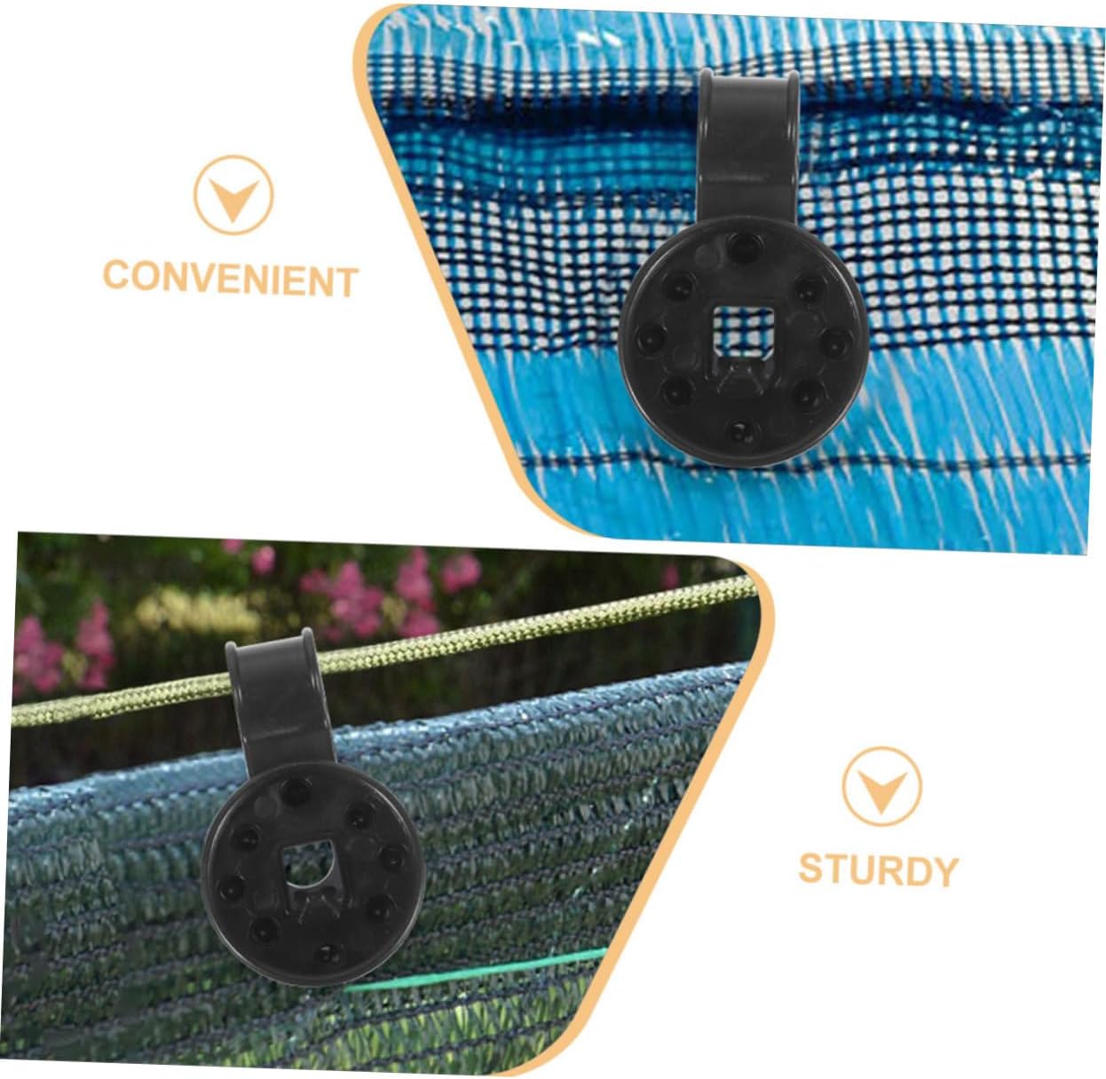 Package List 150 x Shade Cloth Plastic Clips Features -Material:ABS fixed clip for shade cloth -Size:8.50X3.20X0.70cm/3.34X1.26X0.28in agricultural net clip -Color:Black sunshade clips -Easy to fix shade cloth for your greenhouse comfort. Detailed workmanship, make your shade more solid garden clips for netting. -Round shade clip, using materials to make last for years of use. Make your frames more beautiful and functional sunshade clamp for garden. -Simple operation, no special skills required, easy to use. Meet large area fixing needs fixing sunshade clamp. -Can be used for a wide range of fabrics, with wide applicability, . Lightweight and easy to carry, convenient for your outdoor activities clips for sun shade net. -Double fixing, not easy to fall off, make your life more convenient. Tear resistance and strong grip sunshade clamp for sunshade.Goods Descriptionagricultural film clip , they can be attached and removed quickly and easily.shade cloth clips heavy duty They are easy to install and use, with workmanship details to ensures you long-lasting use.fixing net clip Suitable for green gardening, greenhouse, etc.agricultural net clip This shade cloth clip is simple to operate, easy to use, with a design, material and unique shape