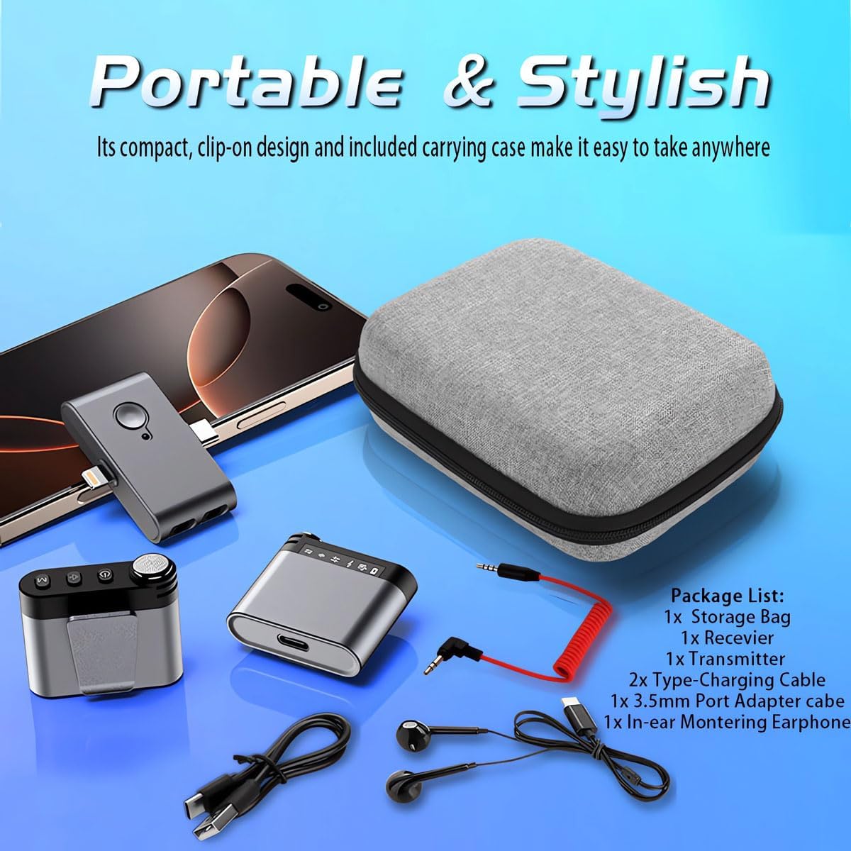 • Extended Battery Performance - Enjoy worry-free recording with the long-lasting 12-hour battery life on both transmitter and receiver. Quick 2-hour charging time gets you back to recording fast. The lightweight and portable wireless mini microphone clip on the lapel , the transmitter weighs just 18.9g for comfortable all-day wear, while the compact receiver is only 15.6g.