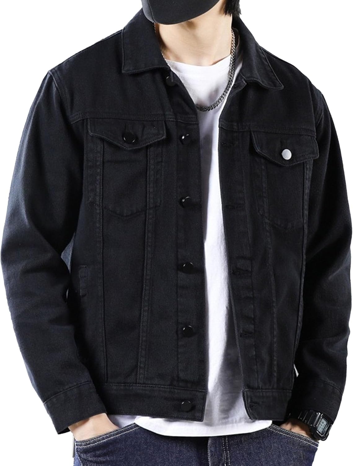 Men's Denim Jackets Cotton Lightweight Casual Button-Down Jean Coat Trucker Jacket Outerwear Product Information: Season: Spring,Autumn,Winter Gender: Male Features: Casual,Fashion,Vintage,Distressed Style: Jackets,Coats,Overcoats,Outerwear,Windbreaker Denim jacket makes you looks fashionable and modern The jacket is make of cotton denim fabric, soft and comfortable. You can wear it as a casual work jacket, a motorcycle riding jacket, it's also suitable for biking, travelling, outdoors. This is a jacket suitable for spring, autumn and winter. Multiple pockets and button show fashion style. Size: Please check the size chart in the picture carefully before purchasing. Suggest you choose larger size than usual. Note: Due to different computer screens, the color may be slightly different, and there may be slight color difference.