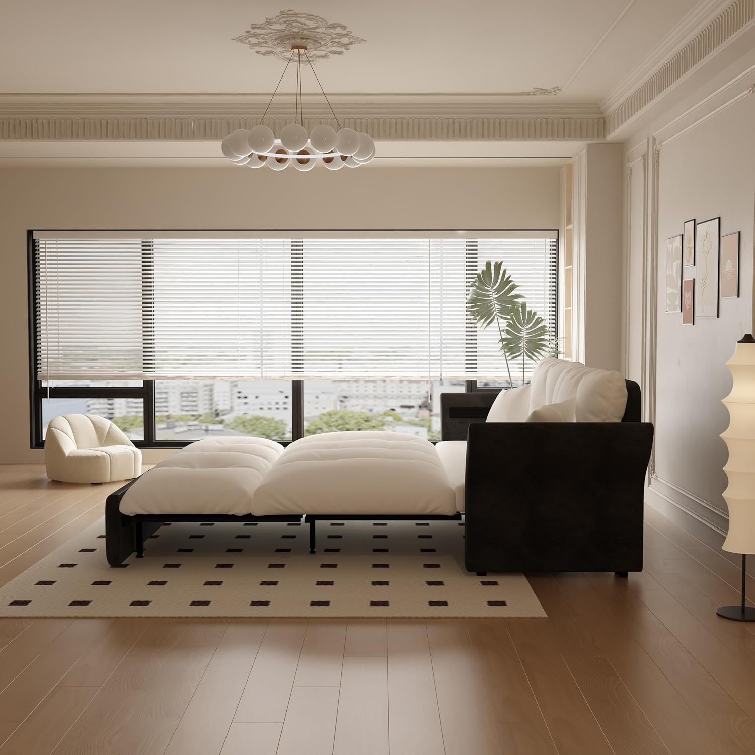 Transform tight spaces into cozy living zones with this 73.2" Queen Pull-Out Sofa Bed. Designed for small apartments, guest rooms, and multipurpose spaces, this 3-in-1 convertible sleeper easily shifts from a loveseat to a chaise lounge or a spacious queen bed. Upholstered in soft velvet and filled with high-density sponge, it ensures comfort whether you're lounging or sleeping. The durable steel frame and fold-out design make setup quick and stable. Perfect for modern living, this compact sofa bed combines space-saving function with elegant style—ideal for everyday use or last-minute guests.