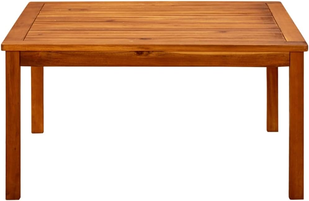 Enjoy a cosy coffee time with your family or friends in your patio space with this stylish wooden coffee table!This table is made of solid acacia wood with a natural oil finish, which is weather resistant and durable. Every step of the process is carried out with the greatest care, be it polishing or lacquering. The sturdy tabletop with slatted design offers you space to put some snacks, fruit baskets, decorative items, as well as other essentials.Important note: Colours and grains vary from piece to piece, making each piece unique; the delivery is random.Note: In order to extend the life of your outdoor furniture, we recommend you to clean it regularly and do not leave it outdoors without protection unnecessarily.Clean: Use a mild soap solution.Storing: If possible, store in a cool, dry place indoors. If the product is stored outdoors, protect it with a waterproof cover. Wipe and dry the excess water or snow from flat surfaces after a rain or snowfall. Allow sufficient air circulation to avoid moisture-related damage.Material: Solid acacia wood with a natural oil finishDimensions: 43.3" x 23.6" x 17.7" (L x W x H)Weather resistantFeatures slatted tabletop designAssembly required: Yes