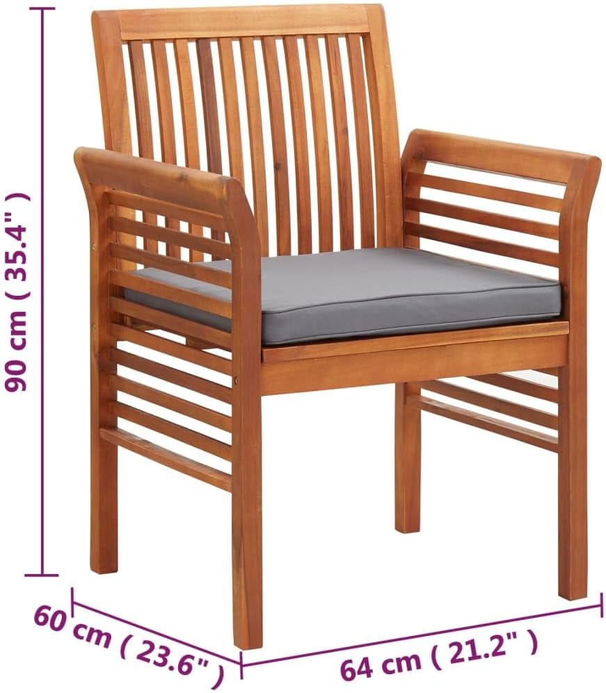 Eating outside should feel like a special event no matter what kind of occasions. Our wooden dining chair is an choice for you.Featuring an acacia wood frame with a weather resistant finish, this acacia wood chair brings a classic look to your patio or backyard while giving your patio space a natural feel. Literally sit back and relax, designed with the deep-seat and cosy foam pad, you can spend all lounging outdoors in superior comfort. The water resistant cushion will allow for easy cleaning.The chair is easy to assemble.Color: Brown frame + dark gray cushionMaterial: Solid acacia wood (oil finished)Dimensions: 25.2" x 23.6" x 35.4" (W x D x H)Weather resistantSlatted designIncludes thick padded cushion
