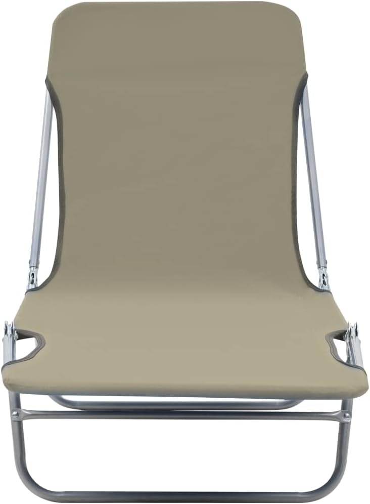 This foldable sunlounger set will be an ideal choice for relaxing and enjoying a day in the garden or on the beach.The sun beds have a comfortable, adjustable backrest. Made of high-quality Oxford fabric, the camping beds are comfortable, hardwearing and weather resistant. The powder-coated steel frames make the beach chairs highly stable and durable. The lightweight sunloungers can be easily folded for storage and transport.Delivery includes 2 foldable sunloungers.Color: GrayMaterial: Powder-coated steel + 600D Oxford fabric with PE coatingDimensions: 22" x 71.7" x 9.6" (W x D x H)Maximum load capacity: 264.6 lbAdjustable backrestDelivery includes 2 foldable sunloungersFabric: Polyester: 100%