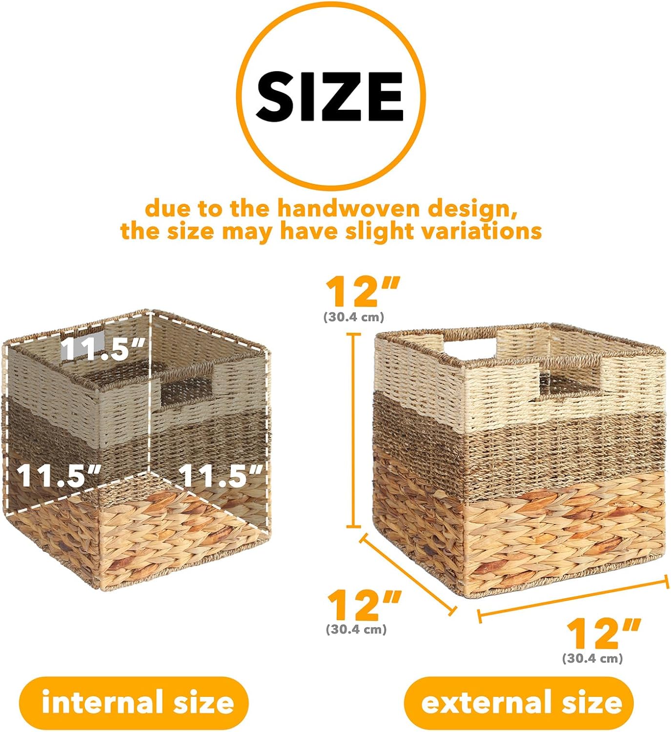 SpaceAid 4 Pack 3 Pattern Design Wicker Basket, Baskets for Organizing, Storage Rattan Basket with Handles for Shelves, Woven Cube Storage Bin Organizer, 10.5x10.5x10.5 inch, Natural