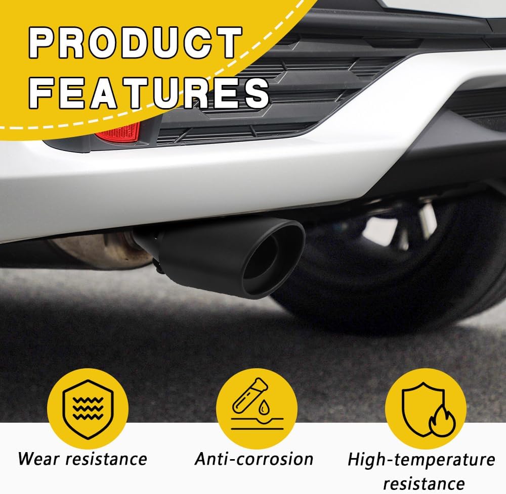 [Durable material] : The exhaust tip for car is made of stainless steel material, with smooth surface, waterproof, anti-corrosion, anti-rust, high temperature resistance, high strength, not easy to deform the characteristics of long-term stable use