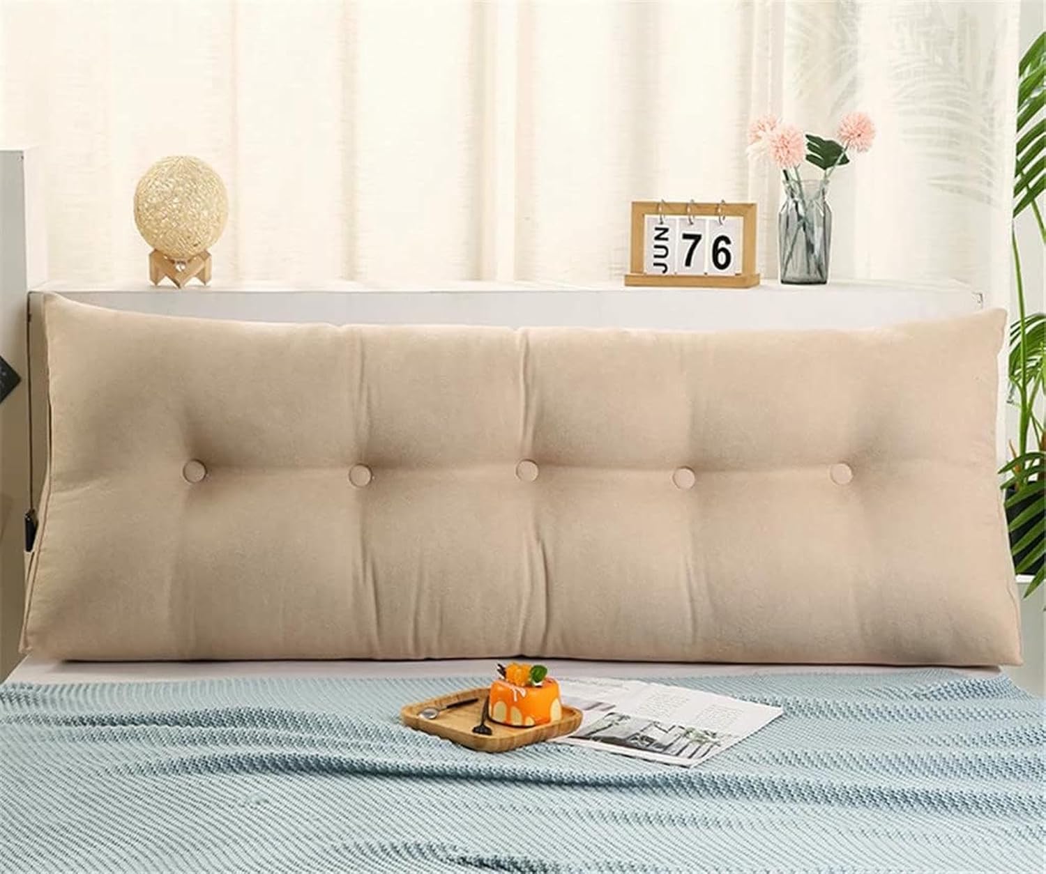 Triangular reading pillow large bolster headboard cushion cover is made of breathable skin-friendly fabric,padded with high resilience pearl cotton, the wedge-shaped cushion offers a comfortable back and neck support when reading and watching TV.Headboard pillow much softer and more adaptable than a headboard. If you want to lie flat but still get neck and head support, you just lay it down and have the flatter end near your neck. Name: Triangular Headboard Cushion cushion cover: skin-friendly fabricFilling: Pearl cottonSize (Length x Thickness x Height):Twin/100x20x50cm(39x7.8x20"),Full/120x20x50cm(47x7.8x20"),Queen/150x20x50cm(59x7.8x20"),King/180x20x50cm(70x7.8x20"),California King/200x20x50cm(79x7.8x20")Package Include:1 x Headboard PillowNote:1. There are slight difference between the picture and the real item caused by light brightness.2. Due to hand cut and hand sewing, please allow 1-2 cm size deviation.3. Please note that we compress this product into a convenient storage bag, so it takes a few days to return to normal thickness after opening the package.Please dry the cushion in the sun first, it will recover faster in the sun.