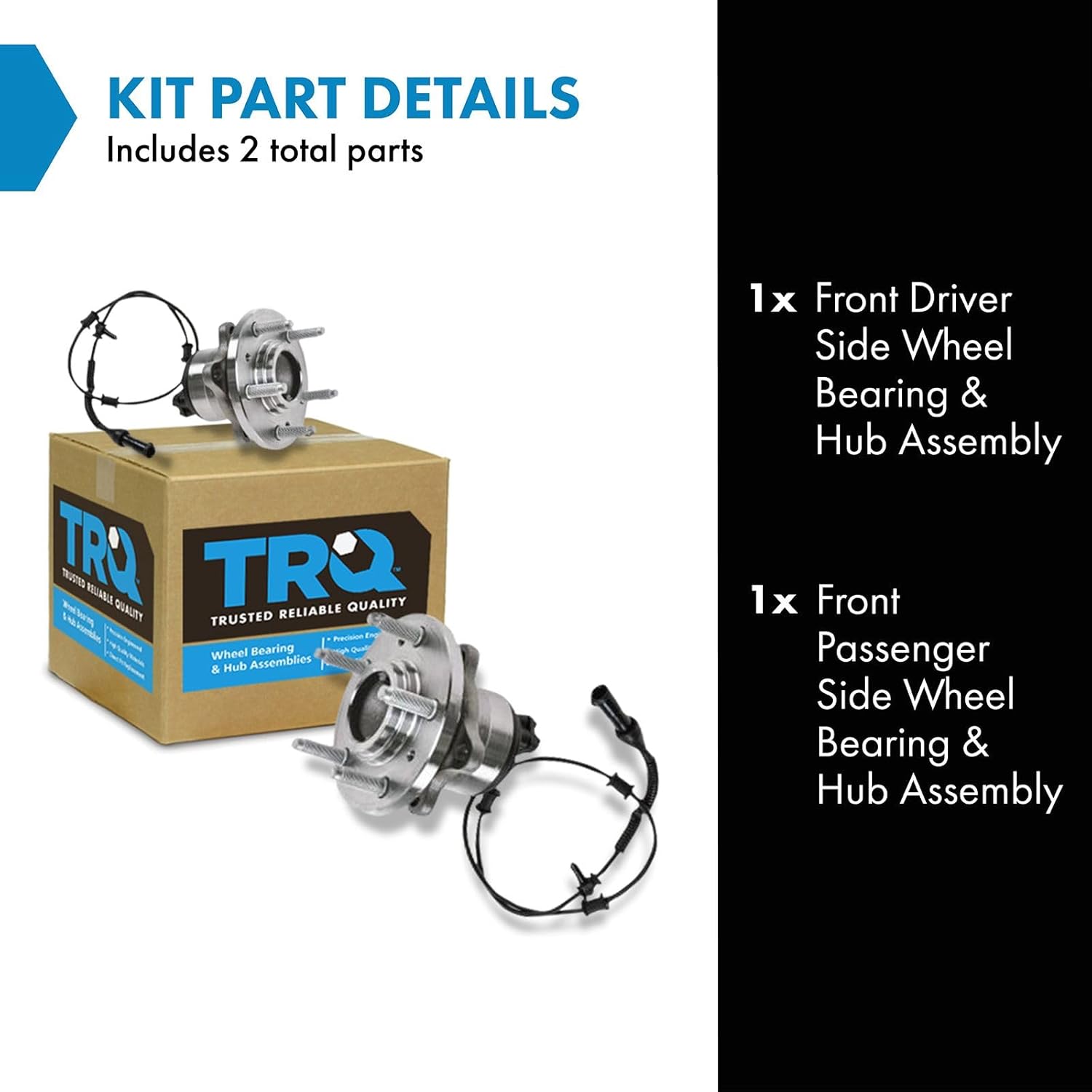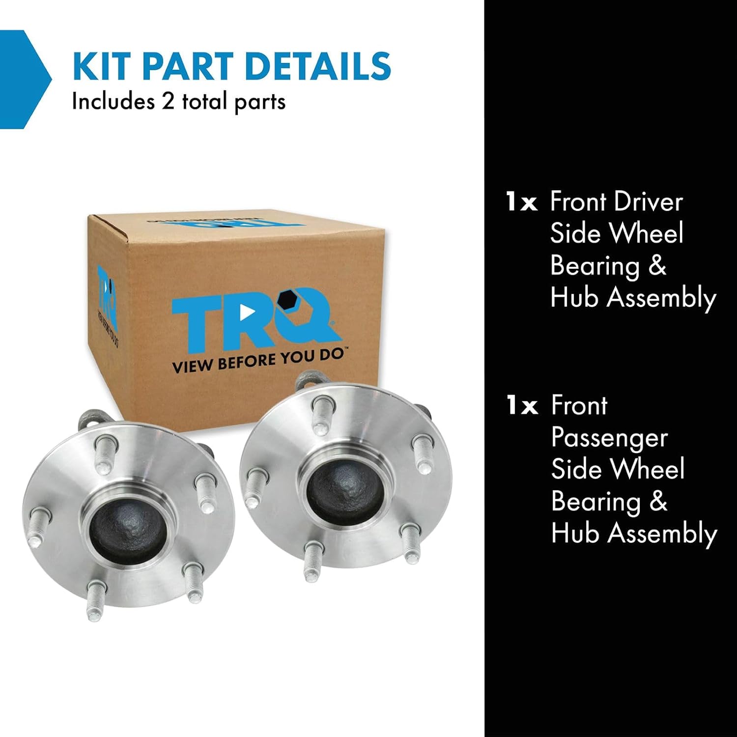 2 Piece Wheel Bearing & Hub Assembly SetKit Includes(1) Front Driver Side Wheel Bearing & Hub Assembly(1) Front Passenger Side Wheel Bearing & Hub AssemblyFitmentCompatible with: 2007-17 Jeep Wrangler Front Driver & Passenger SideCompatible with: 2018 Jeep Wrangler JK Front Driver & Passenger SideProduct AttributesBearing Type: BallQuantity: 2 PieceReference Numbers BR930612 MB253154026701740267017E51327251336952060398AC52060398AD52060398AE538-001557132727200018930625BR930612BR930839G25315G513272H513272HA590242HA590482MB25315NT513272WE60834WE61905