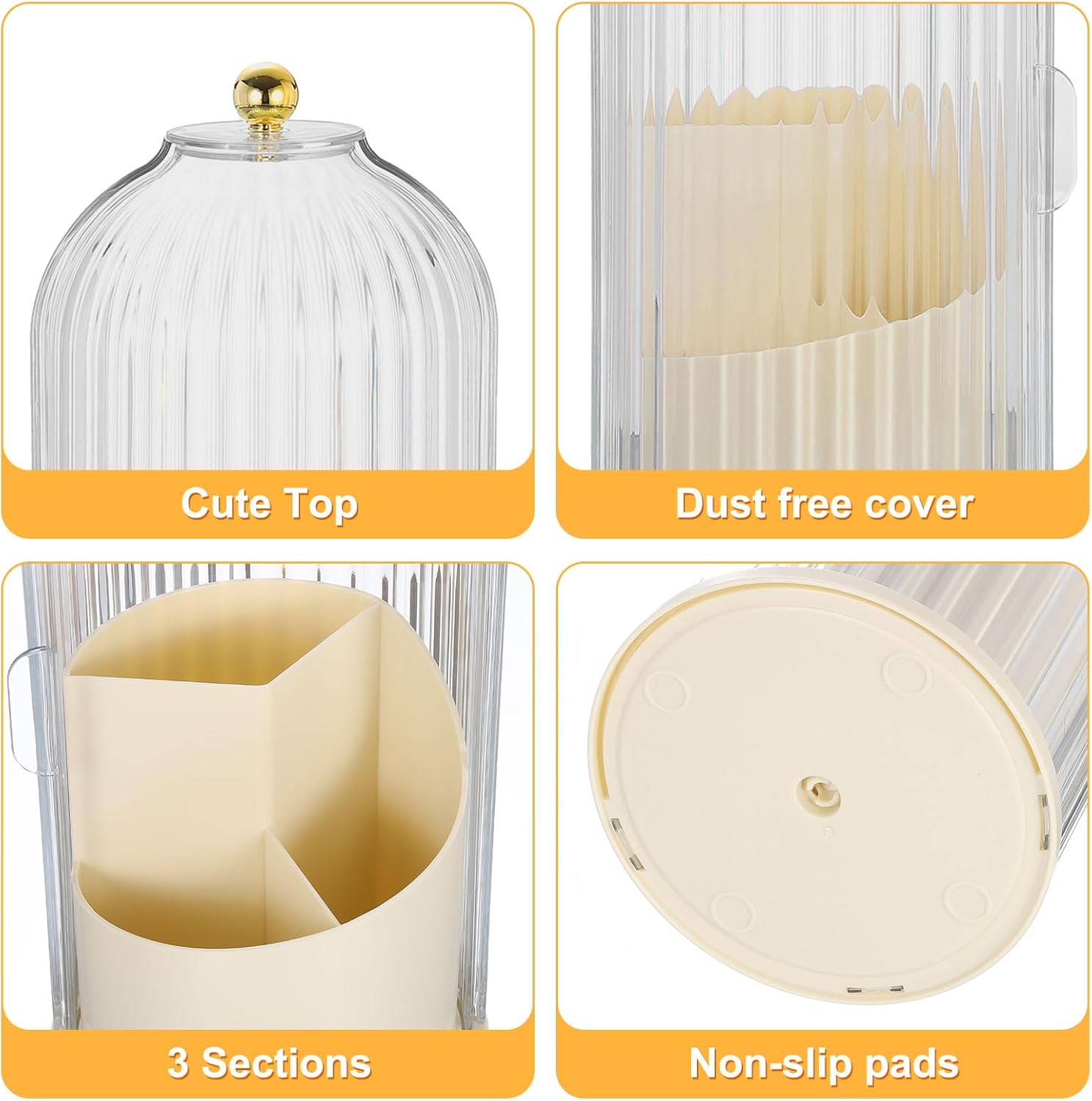 Description:Material: The makeup brush storage box is made of PP+HIPS material, which is durable and sturdy for long-term use. The edges of the makeup brush storage rack are polished smoothly and there is no burr on the surface. It will not scratch your body.360-degree rotating design: find the makeup tools you need quickly and easily, saving time.Transparent dustproof material: keep makeup brushes clean and dustproof.Cover design: effectively dustproof and waterproof, protecting makeup tools free from dust and water.Multifunctional use: can place makeup brushes of various sizes or other small makeup tools to improve overall storage efficiency.Suitable for storing makeup brushes and other cosmetic tools, can be placed on dressing tables, desktops or bathrooms.SpecificationColor: Clear, CreamMaterial: PP+HIPSSize: 12 x 27 cm / 4.7 x 10.6 inch(Dia x H)Packing Include: 1 Pcs x Makeup Brush Holder with Lid