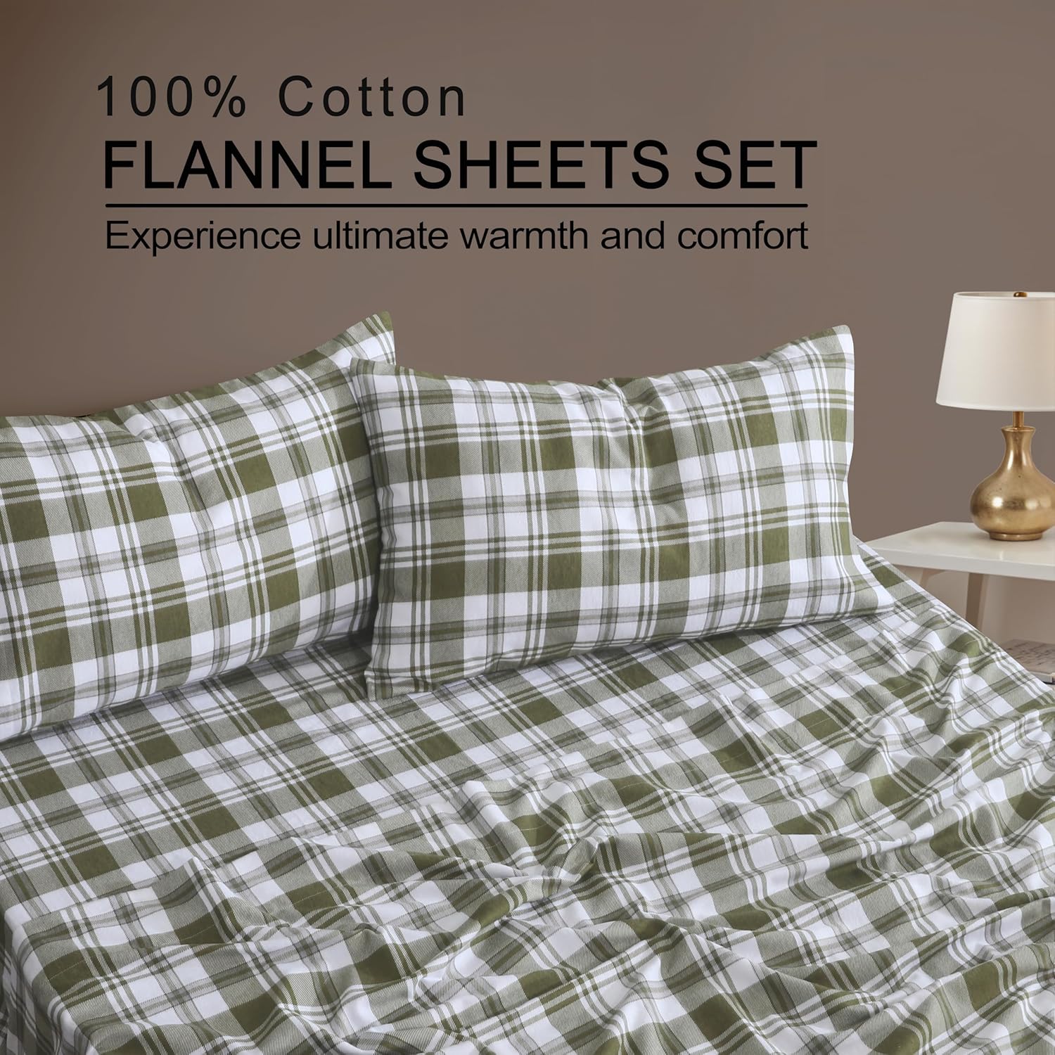 • What’s Included: These 4-Pieces Cotton Flannel Queen Sheet Set combines style and function, available in a range of colors to suit any decor. The set includes a Deep-Pocket Fitted Sheet (80" x 60") with 18" stretch, 1 Flat Sheet (90" x 102"), Two Standard Pillowcases (20" x 30") for a complete, cozy look.